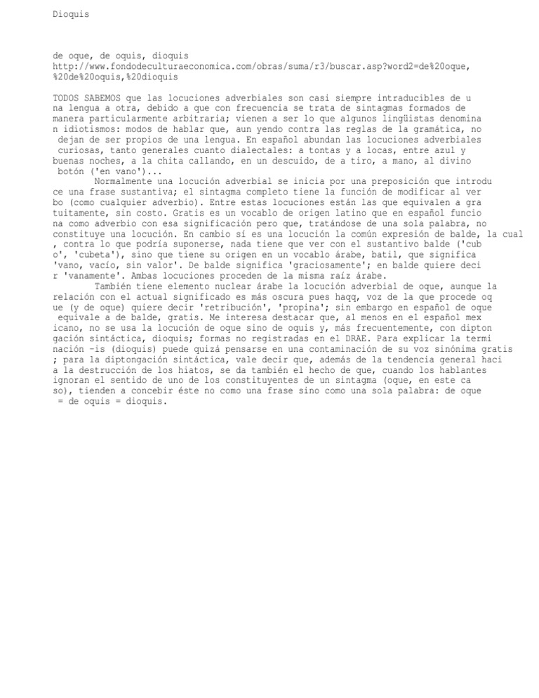 De oque de oquis dioquis T ODOS SABEMOS que las locuciones adverbiales son casi siempre intraducibles de una lengua a otra debido a que con frecuencia se trata de sintagmas formados de manera particularmente arbitraria. 23 Es esta la trascendencia del principio de igualdad porque sin ella no será posible generar que. Google has many special features to help you find exactly what youre looking for.